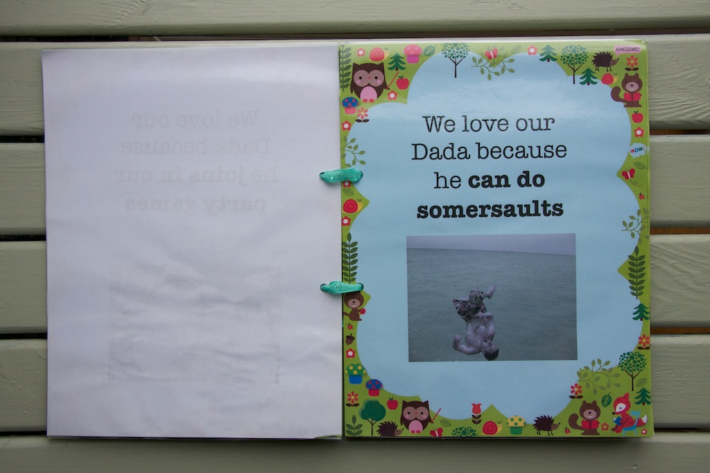 This might be the last year our big boy Sammy calls his father Dada. In September he will walk through the school gates and Dada will probably become a distant memory! So we made our own special present for his birthday. We adore this book my sister in law gave to the boys. Why I Love My Daddy. The idea is it's children in their own words. So we sat down, scrolled through our photo library and found some corkers. I had some sweet woodland paper and although I nearly threw the printer out of my office window at midnight and there are a couple of smudges, it turned out beautifully. Laminated and everything.